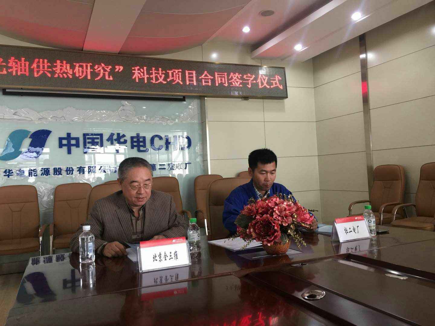 2017年9月15日,北京米兰官方网页版-米兰online(中国)公司与华电能源牡二发电厂在牡二发电厂举行“苏制210MW汽轮机全背压光轴供热技术研究与应用”科技项目合同的签约仪式。北京米兰官方网页版-米兰online(中国)公司总经理王振鹏、华电能源牡二发电厂代表兰晓军及相关领导共同出席签约仪式。双方在饿制机供热改造合同及汽机改造长期战略合作项目上完成签字。